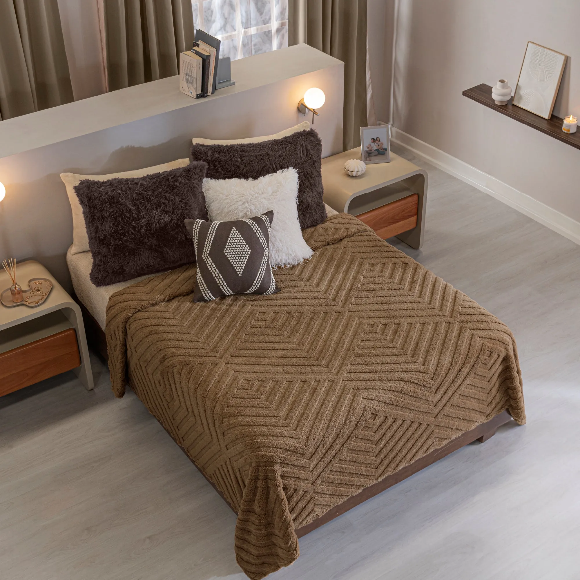Cobertor con textura en relieve en sus dos vistas, súper suave por su textura Beauty Soft. Ideal para mantenerte calientito en cualquier época del año.