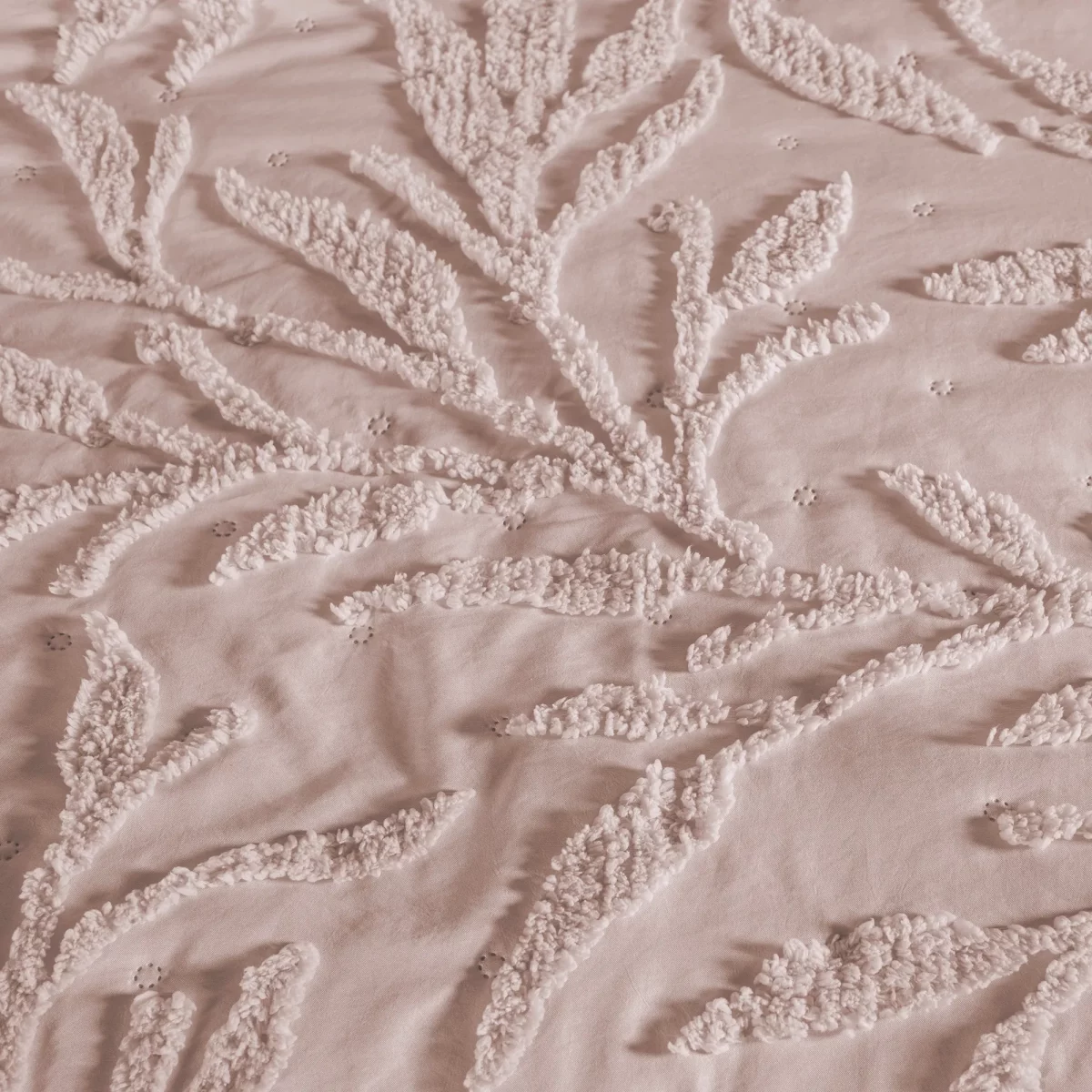 Edredón Nuut Bloom en color rosa, sus motivos de hojas que aportan un aire fresco y elegante. Su suavidad y diseño único lo hacen perfecto para dar un toque acogedor y moderno a tu dormitorio, combinando comodidad y estilo.