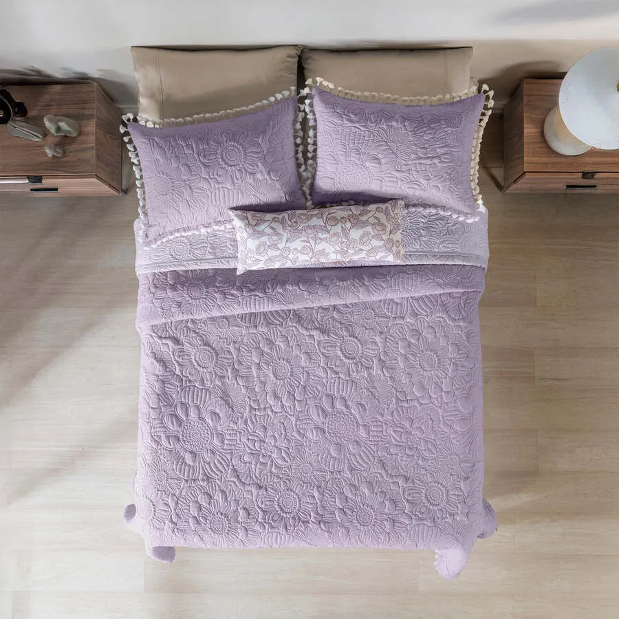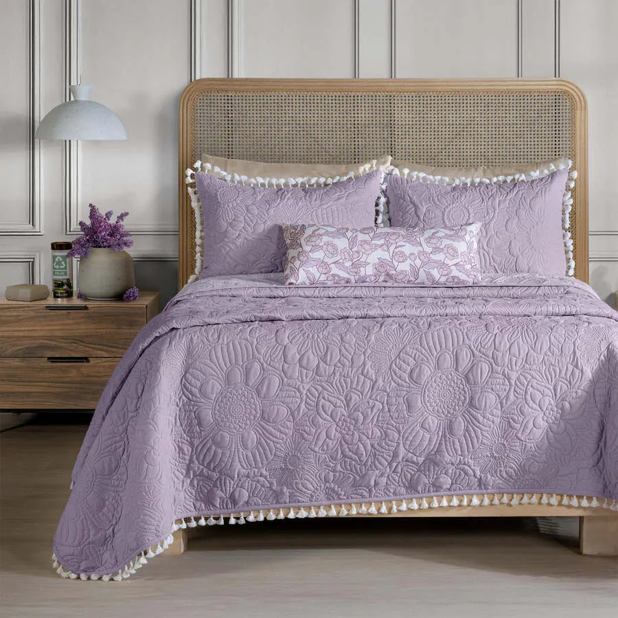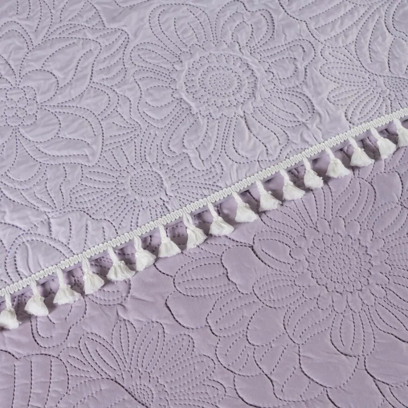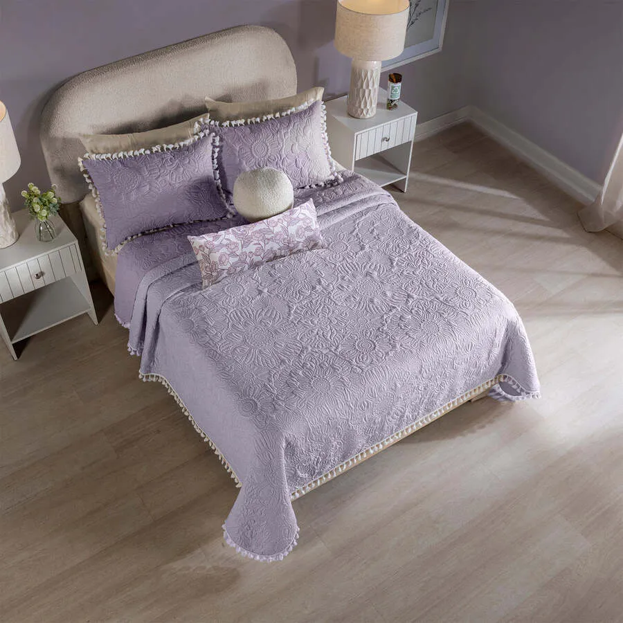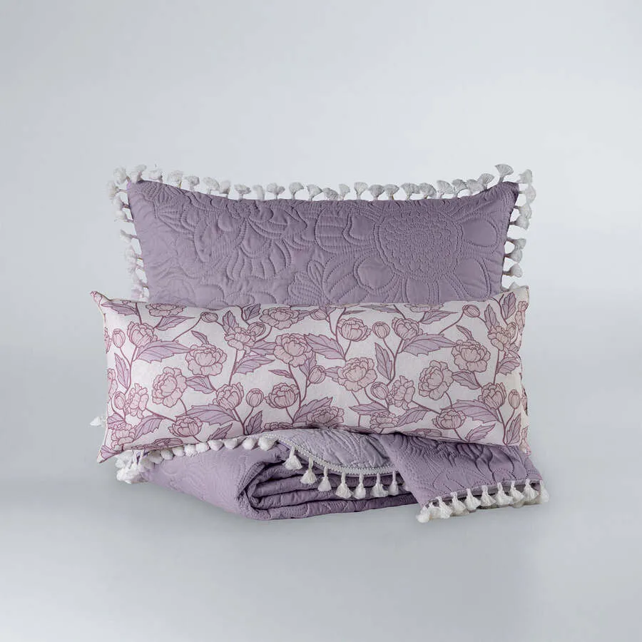 -Flecos en el contorno de fundas y edredón. -Cojín bucle bordada.