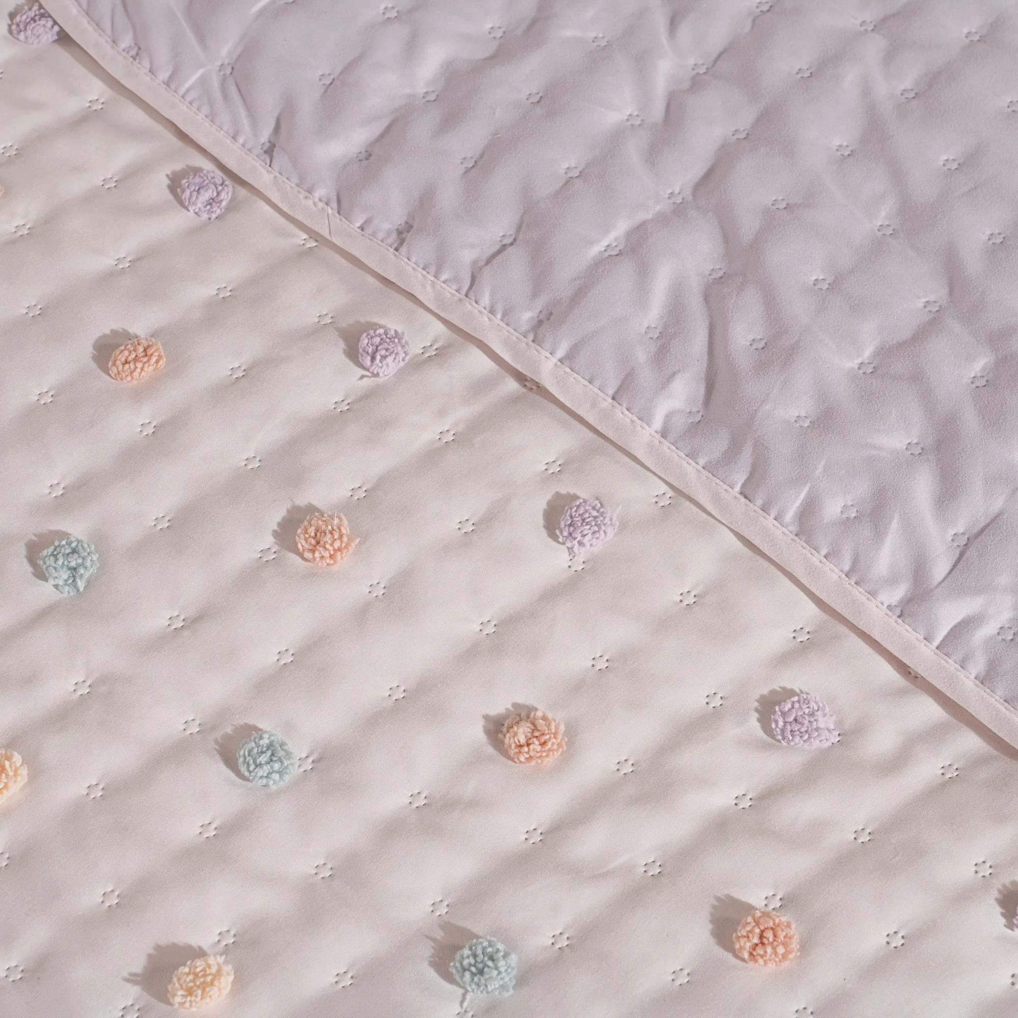 Edredón Baby Dots con una adorable combinación de abejitas, flores, frutas y puntos, que ofrece calidez y suavidad. Su encantador estilo, colorido y alegre, crea un ambiente tierno y acogedor.